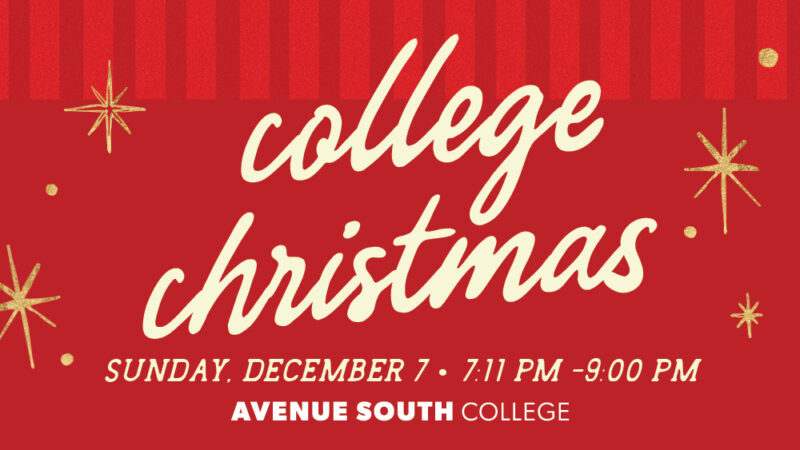 Join us on Sunday, December 7 from 7:11–9:00 p.m. in the Sanctuary for our annual College Christmas Celebration! We’ll gather for worship, community, and plenty of festivities as we wrap up the semester together. Invite your friends—we can’t wait to see you there!