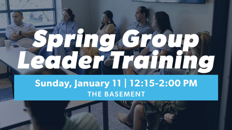 Join us on Sunday, January 11, from 12:15–2:00 p.m. in the Basement for a focused time of vision, training, and encouragement as we prepare for the spring semester. We’ll preview the upcoming sermon series, sharpen group facilitation skills, and equip you with practical tools to strengthen community and discipleship. This event is for all current and prospective leaders—lunch and childcare provided with registration.