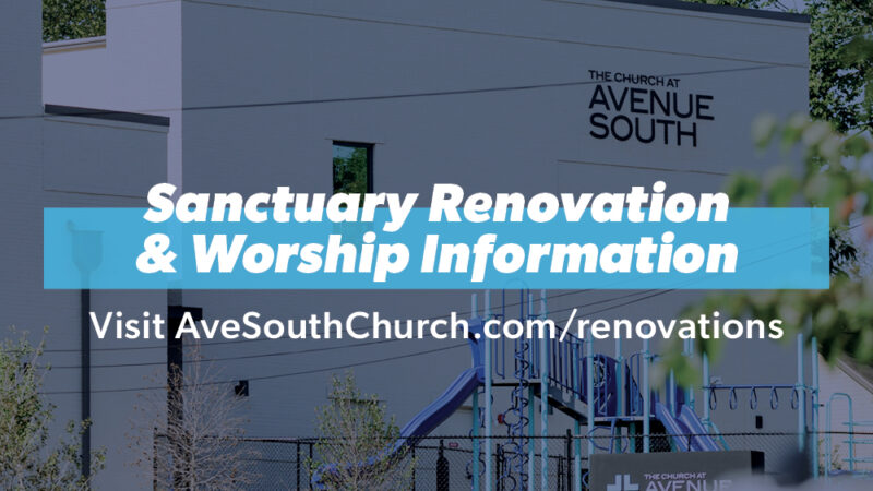 Avenue South is investing in our sanctuary to better serve our growing congregation. While renovations are underway, we will gather offsite for worship on Sundays, April 26 through May 17. Beginning Sunday, May 24, we will return to Avenue South and move to three services at 8:00, 9:30, and 11:00 a.m. while the balcony renovation is completed.