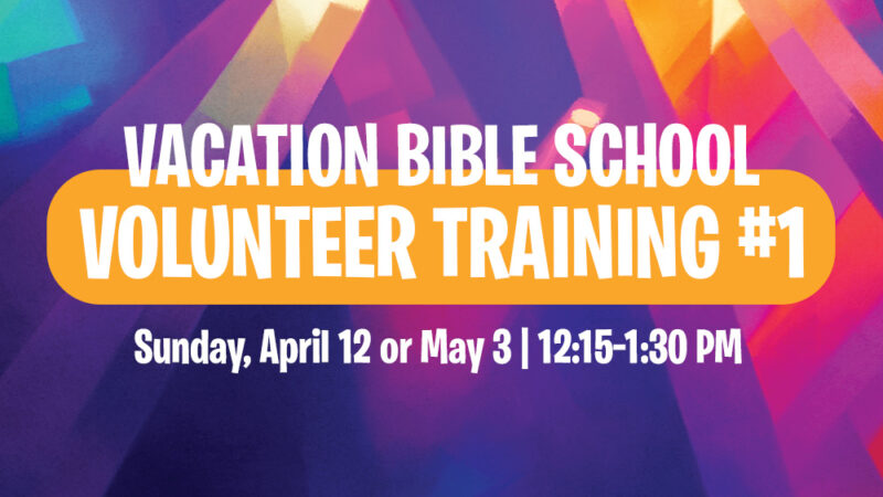 All VBS volunteers are invited to attend VBS Volunteer Training #1 on either Sunday, April 12, or Sunday, May 3, from 12:15–1:30 p.m. in the Basement. Both dates will cover the same information, so you only need to attend one. This training will help you prepare to serve confidently and faithfully during VBS, and all volunteers are asked to attend one of these sessions in addition to a second required training on June 14.