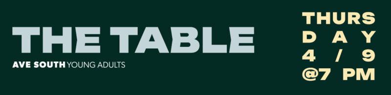 Join us for The Table on Thursday, April 9, from 7:00–8:30 p.m. in the Sanctuary. Our Young Adults gathering is a great opportunity to connect, build community, and grow together as we open Scripture and spend intentional time together. Come take a seat at the table and be part of what God is doing this spring.