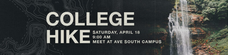 Grab your hiking shoes and join us on Saturday, April 18, from 9:00 a.m.–4:00 p.m., meeting at Avenue South to carpool for a day outdoors. This is a great opportunity to connect with other college students, enjoy God’s creation, and build meaningful community together.